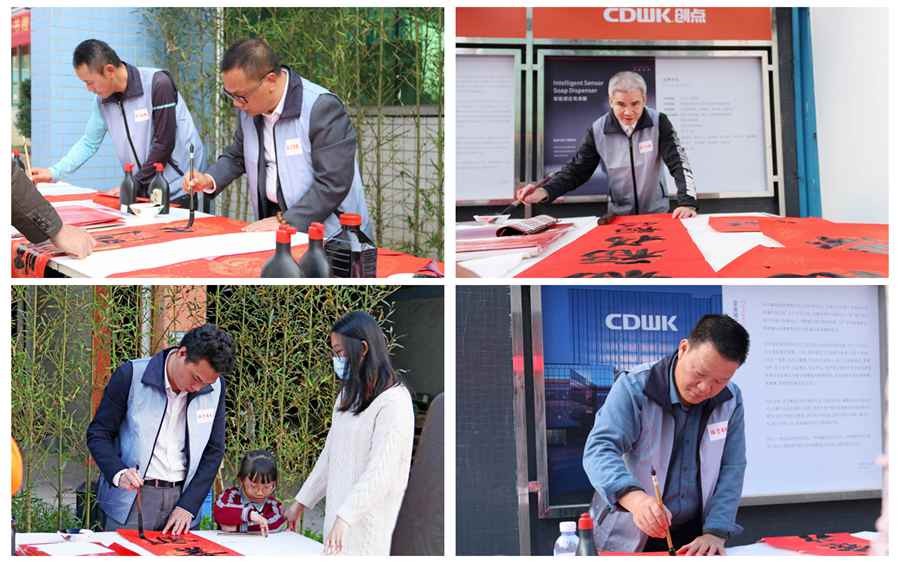 儒韻雅風展成果,筆歌墨舞留清香。鳳崗書協(xié)老師們現場揮灑豪墨,場面可謂壯觀,且氣勢磅礴。地面紅彤彤一片,都是書協(xié)老師們揮毫的春聯。CDWK創(chuàng)點與鳳崗書協(xié)的交流活動,無疑是與書法文化有機融合,同時也為弘揚鳳崗企業(yè)文化和書法文化搭建了一個良好的平臺。